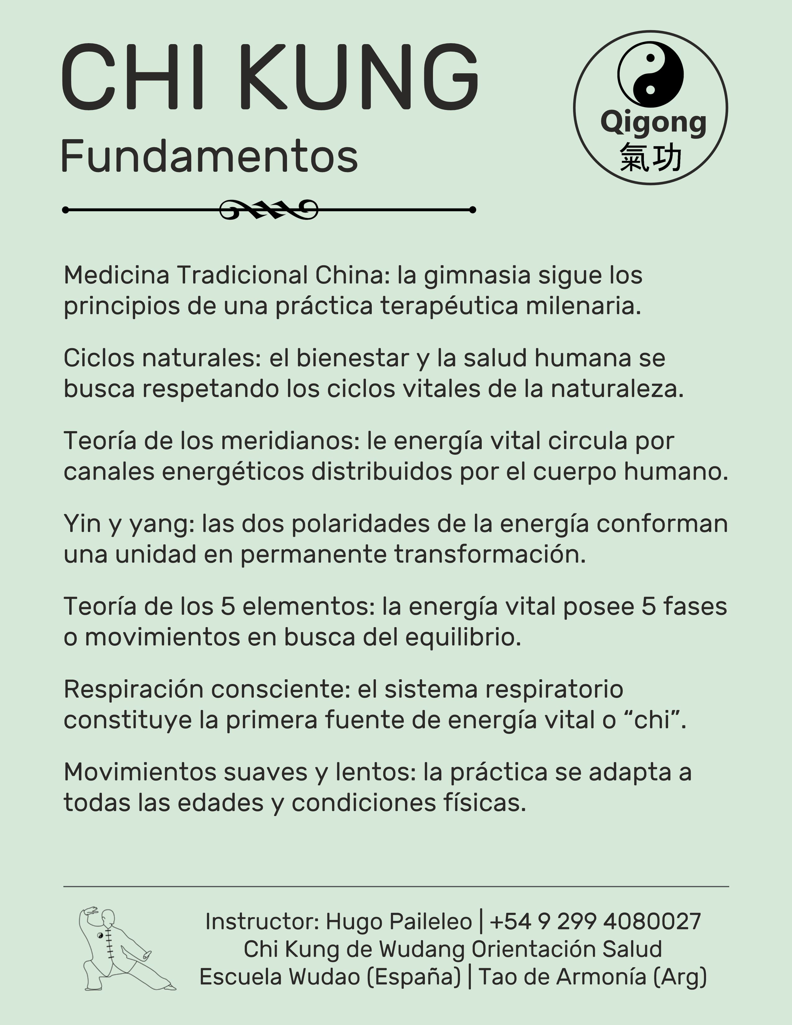Chi Kung o Qigong es una gimnasia terapéutica complementaria de la Medicina Tradicional China.